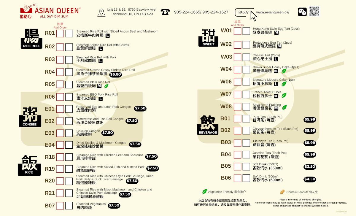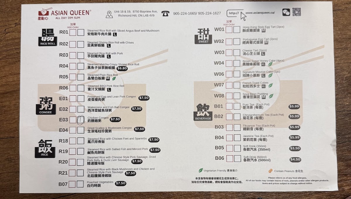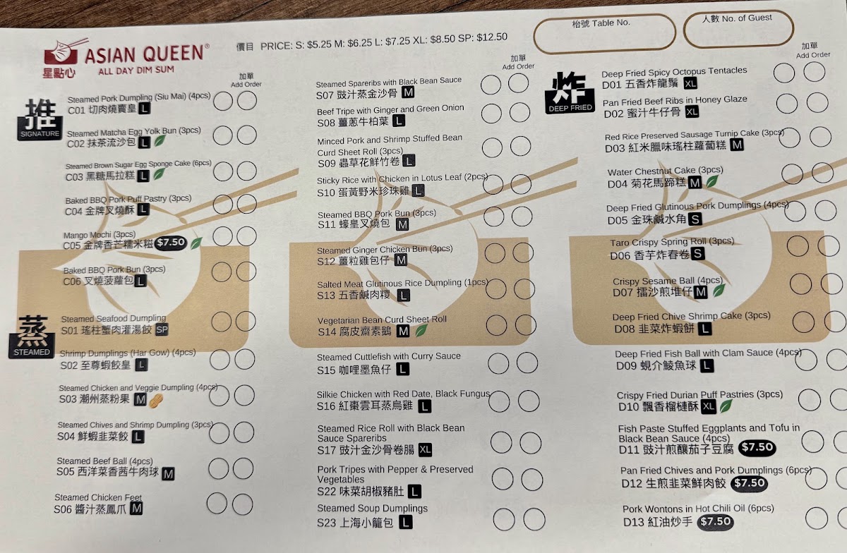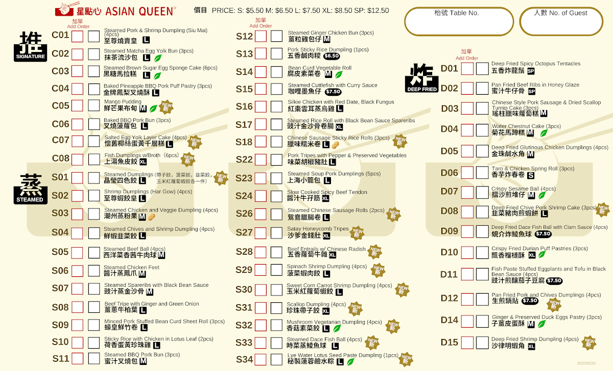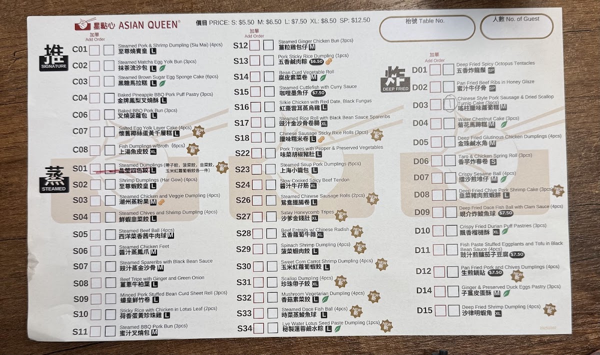 Asian Queen 星點心 Menu